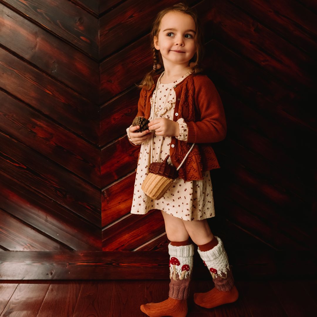Our Mushroom Leg Warmers bring that same cozy woodland charm to your child’s everyday adventures.