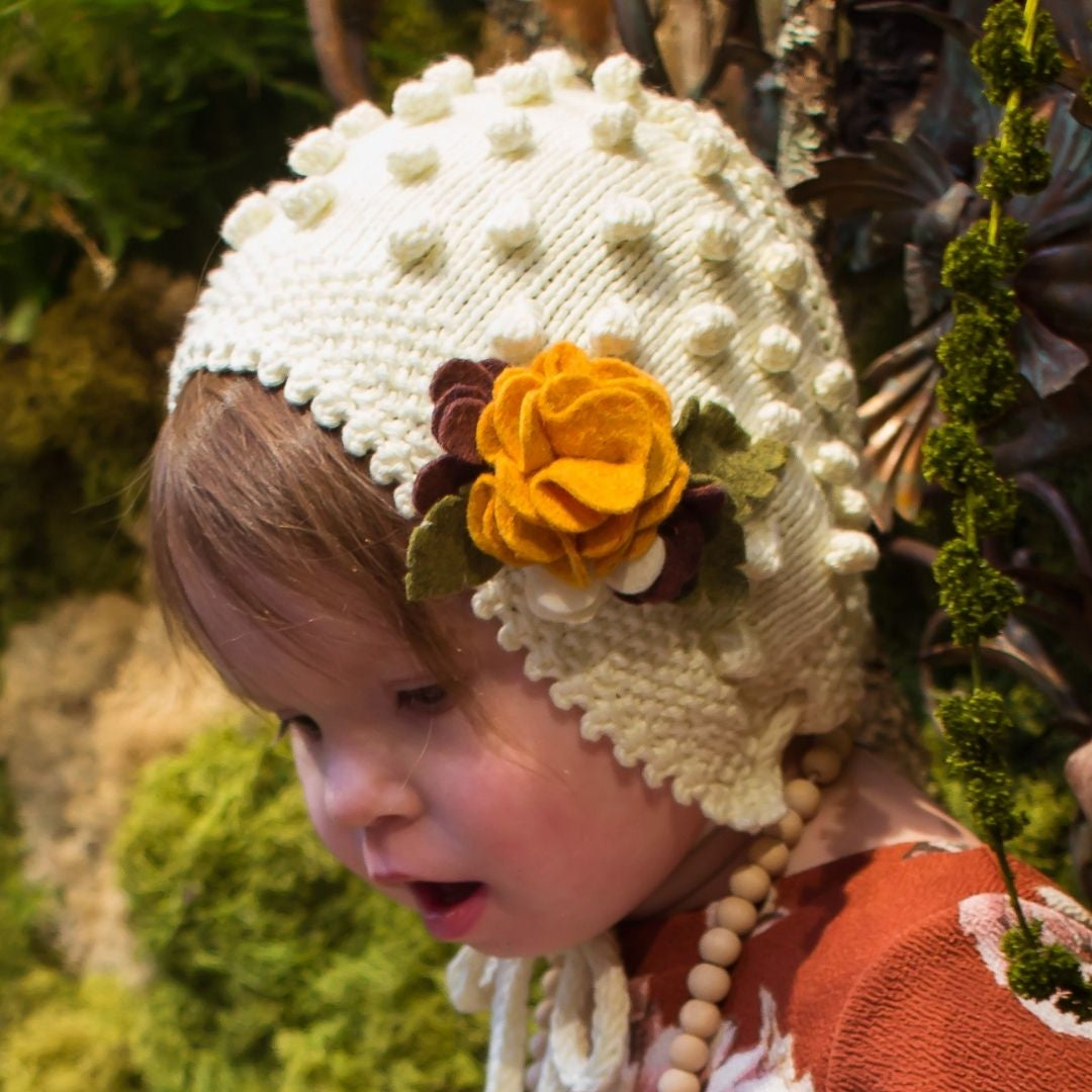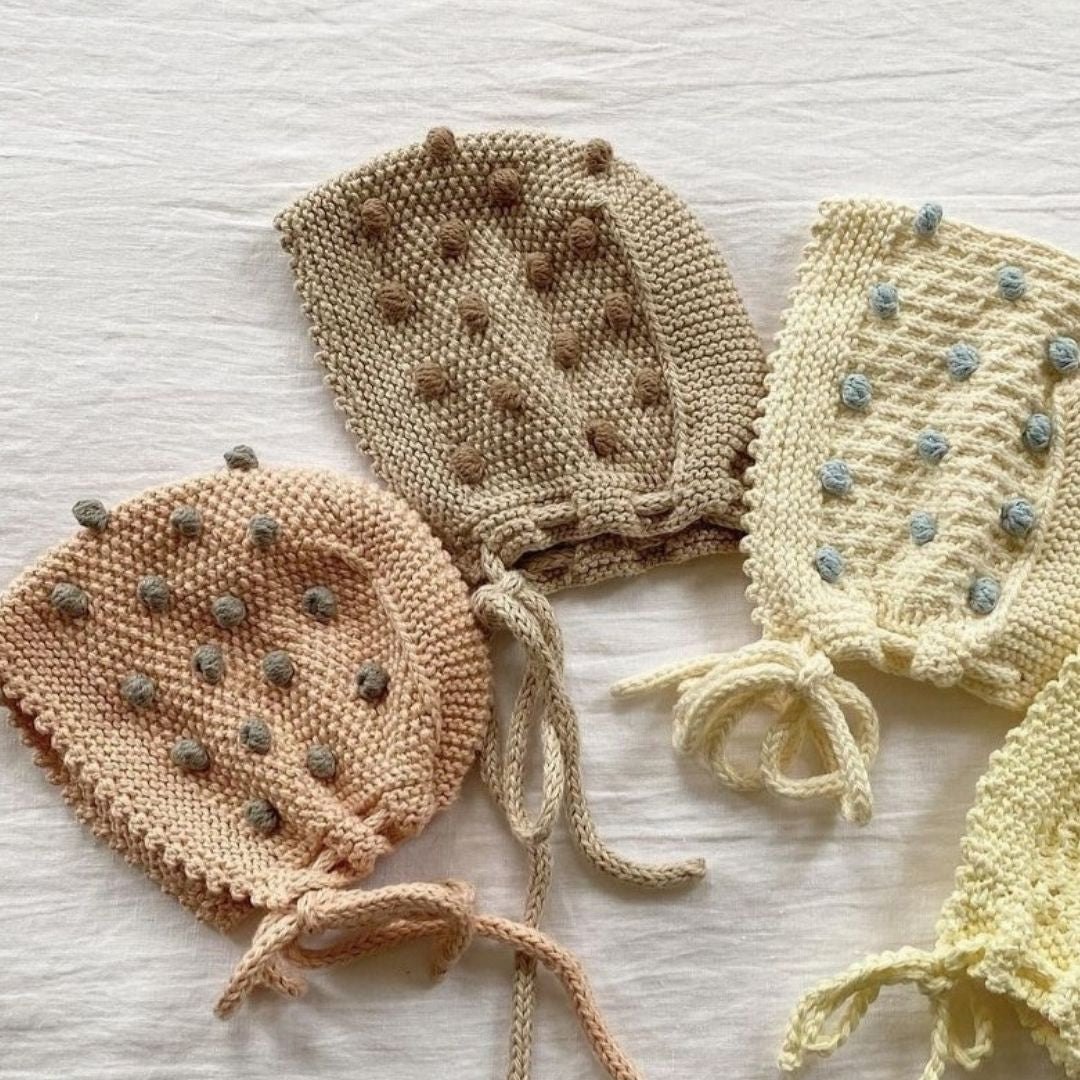 Playful popcorn stitch: Each bonnet is hand-knitted with a charming popcorn texture that adds character and whimsy to the classic silhouette.