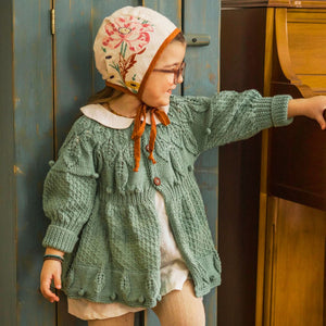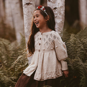 Have you seen the details on our beloved Shirley Cardigan? It’s giving off the most beautiful vintage vibes. One of those slow fashion gems that never really go out of style. The kind of piece you keep for years because it just feels special every time you see your child wearing it.
