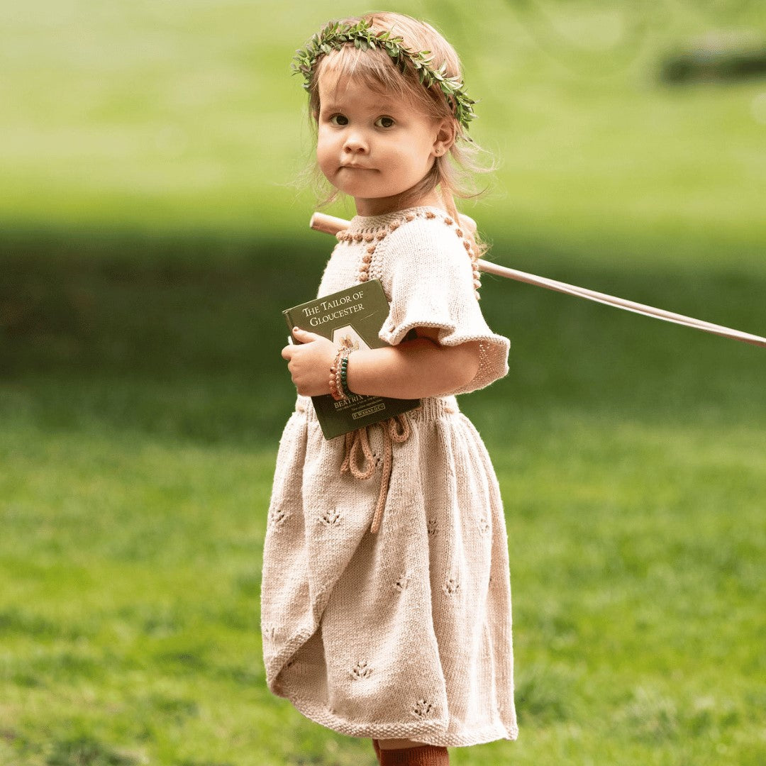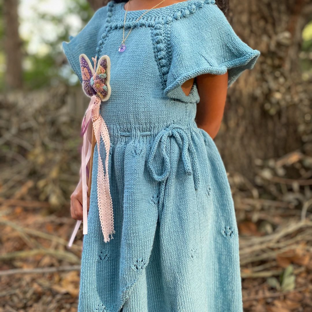 This elegant dress is our newest JuneBeeBaby piece! My favorite features are the flared ruffled sleeves and the popcorn knits along the neckline that resemble a pearl necklace. No need to size up🤍
