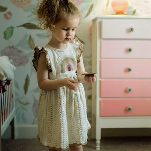 Capture every sweet moment with our Rainbow Pinafore. A little piece of sunshine to cherish year after year.
