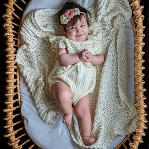 A cozy, flutter-sleeved romper made to grow through the seasons!