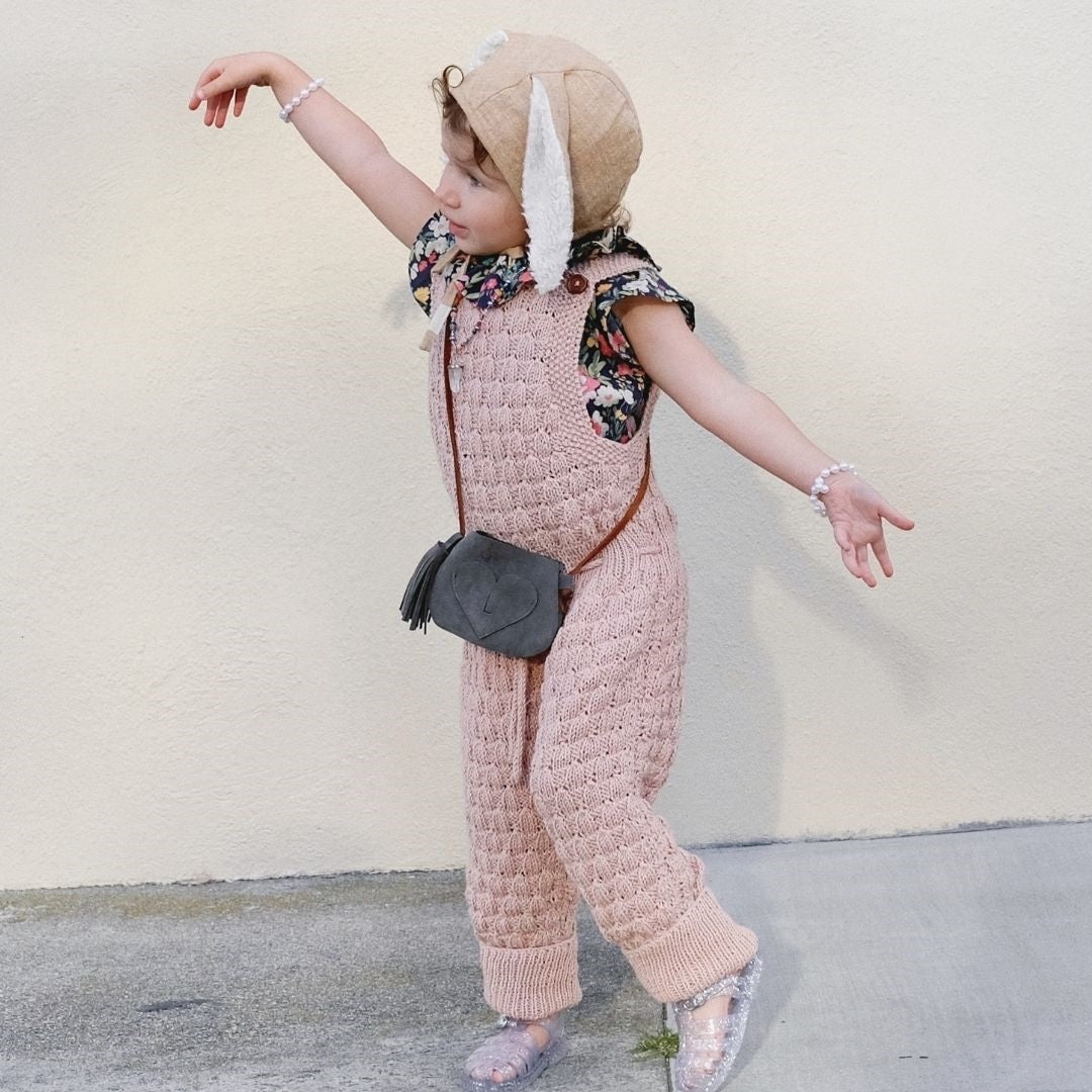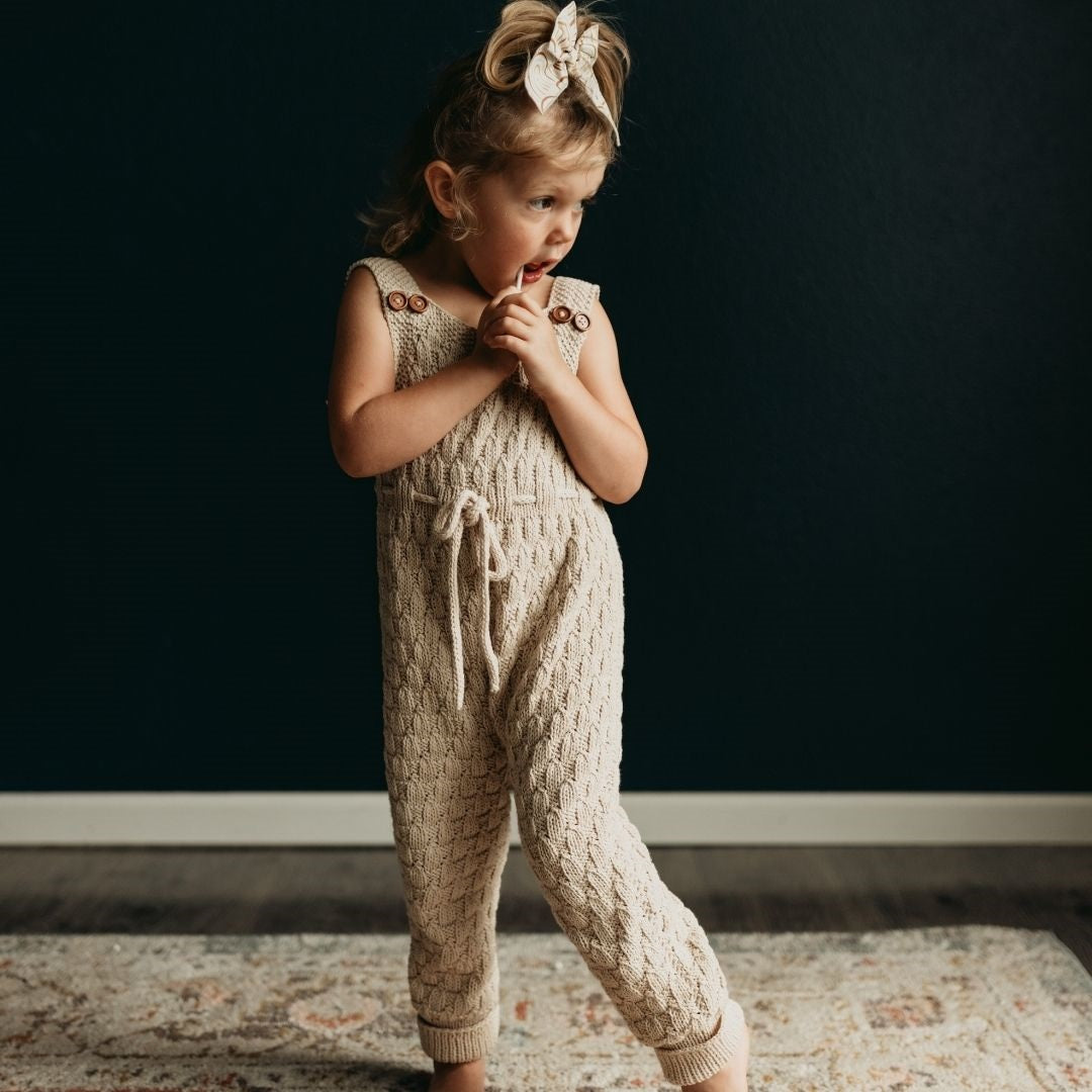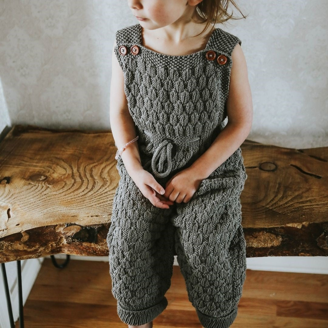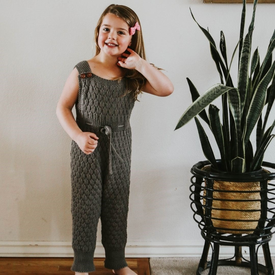 This is our second time owning a Dakota Playsuit—it is that good. This playsuit was designed to last several seasons and for us, several years. Between the adjustable straps and the cuffed pant hem, you will have the opportunity to get so much wear out of this beautiful & cozy knit. My daughter would slip this on every single day if allowed, it is so comfortable. And she has been complimented every single time she’s worn it in public.