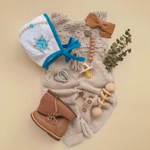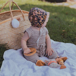 Available in baby, child, and doll sizes (for Minikane & Miniland) so little ones can twin in style. Doll sizes come as a set with romper, bonnet and a pair of booties.