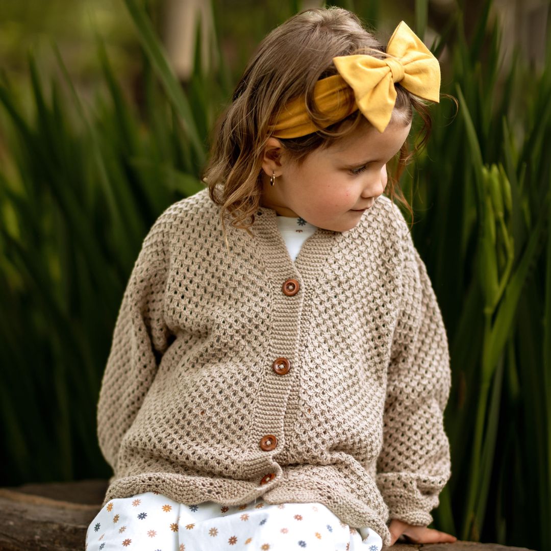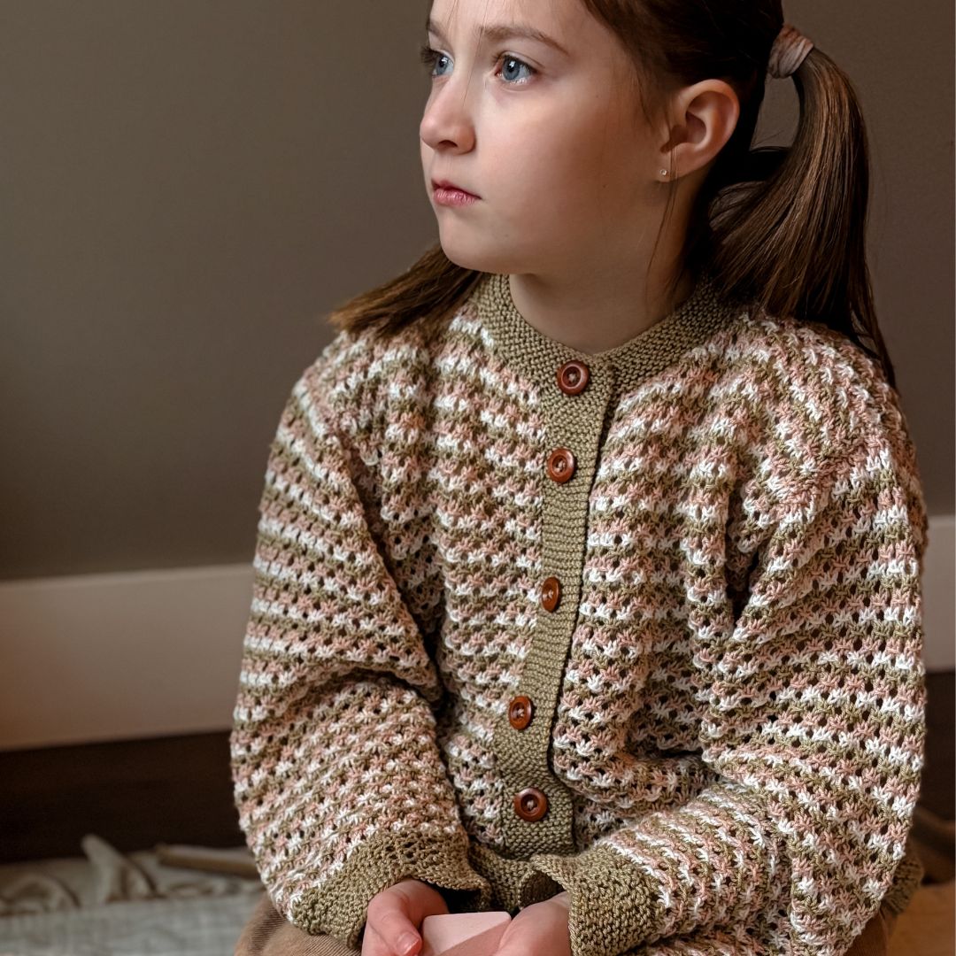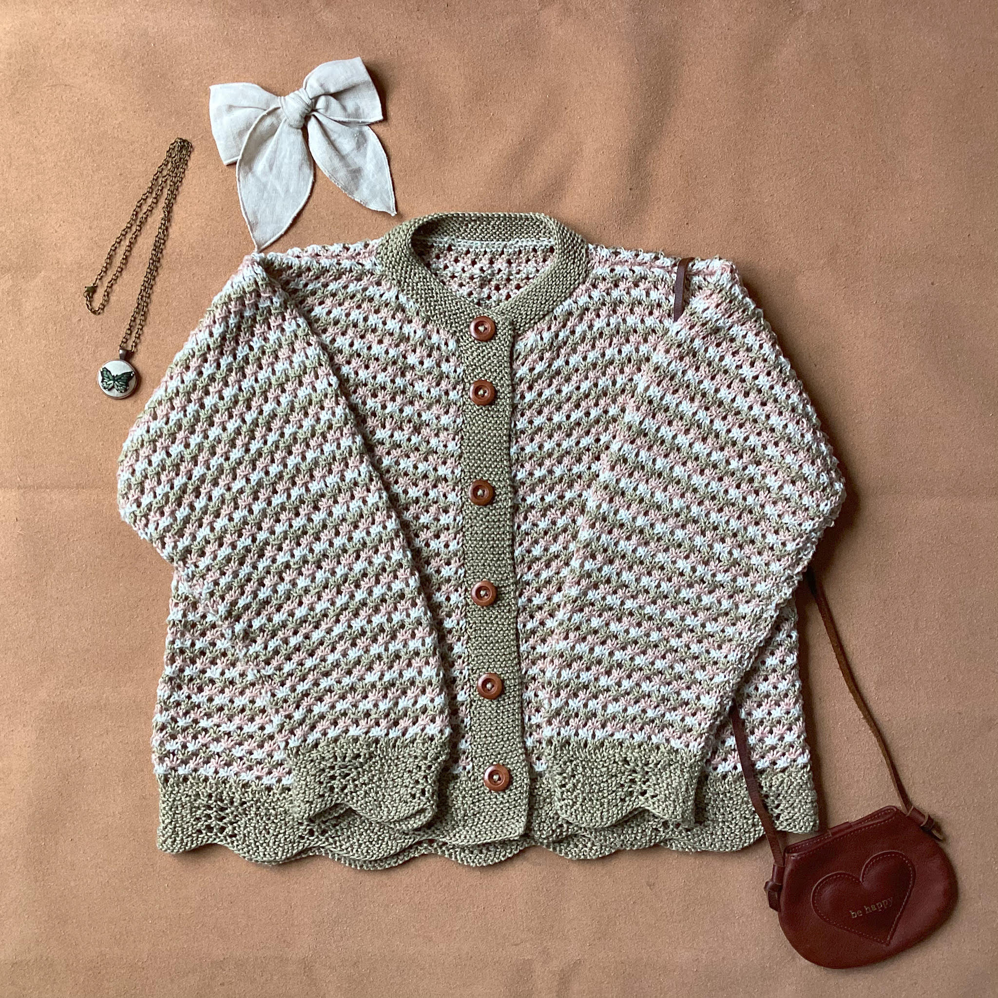 The Taylor Cardi captures that feeling perfectly. Hand knitted with care, it’s a blend of vintage charm and everyday practicality. Soft, scalloped edges, delicate lacework, and wooden buttons that feel as natural as the cotton it’s made from.